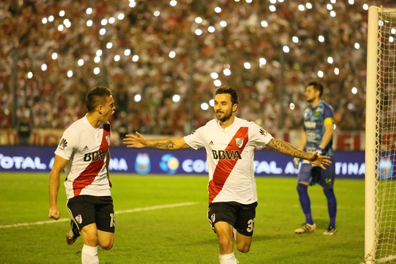 Las mayores emociones del partido sucedieron en los primeros 15 minutos y la victoria de River se resolvió rápidamente. Una mano innecesaria de Adrián Cubas en su propia área derivó en el gol de Scocco de penal y en la apertura del marcador. Unos instantes más tarde, el ex Newell’samplió la diferencia y llegó a su cuarto tanto en la presente edición de la Copa Argentina, ya que también convirtió por duplicado con la camiseta de la Lepra, en el triunfo por 4-1 ante Central Norte de Salta, por los 32avos.